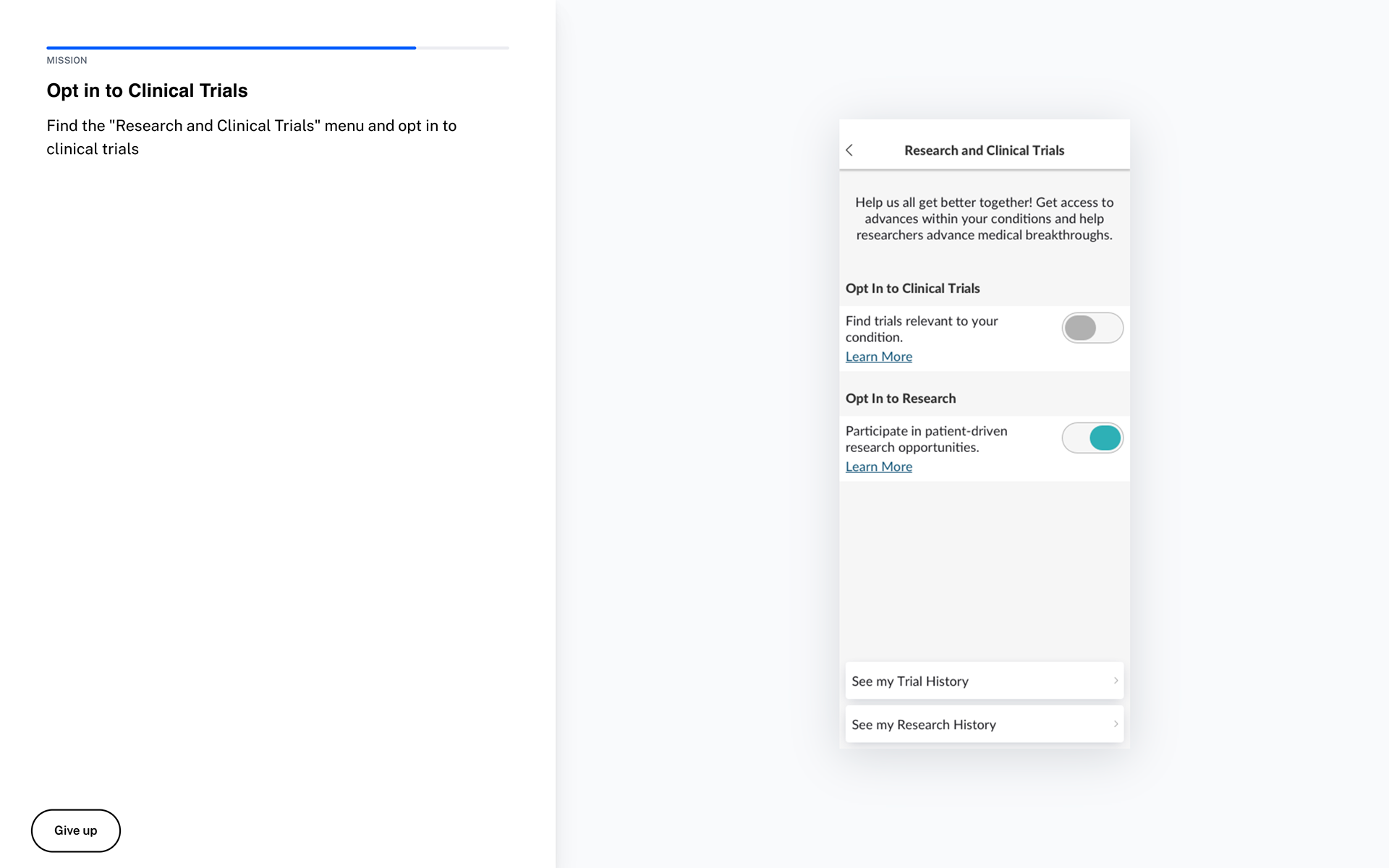 I used Maze to create a series of activity completion tests to see how people would go about accomplishing tasks like creating posts, adding entries to their journal, finding physicians or opting in for clinical trials. While almost everybody was able to complete the tasks, they didn't always take the path I would have imagined to get there. A valuable reminder to build roads that allow people to take the scenic route sometimes.