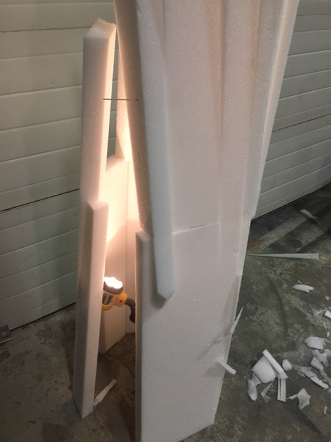 The solution was a resin-coated foam exterior with a metal armature, all anchored to a large box housing the electronics. We would be able to weigh the piece down with sandbags and insulate the electronics with a few layers of waterproof material.